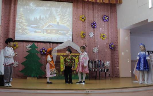Юные артисты из объединения «Драматешка» вместе с педагогом Еленой Юрьевной Овчинниковой подготовили представление «Рождественские посиделки» и в святочные дни, 14 января, пригласили на него благочинного Николаевского округа протоиерея Владимира Растопшина, его супругу Елену Растопшину, помощника благочинного Ирину Владимировну Кузнецову, родителей ребят и других гостей.
