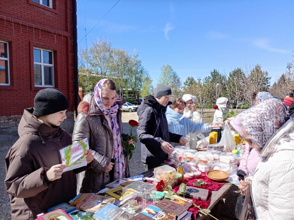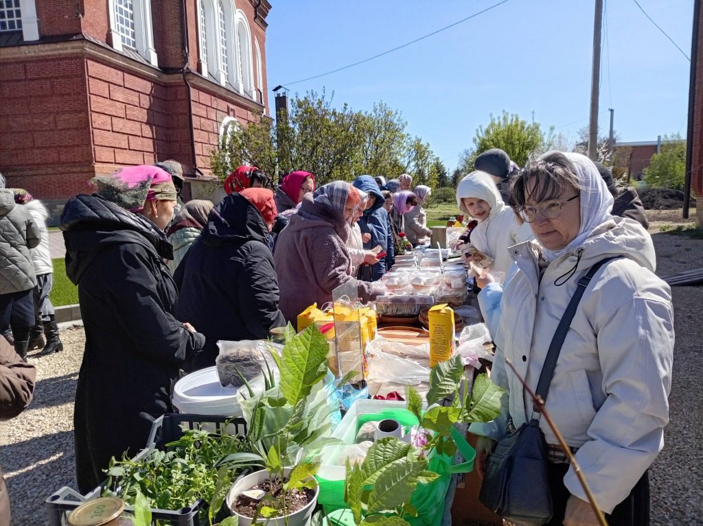 Педагоги, воспитанники Свято-Сергиевской воскресной школы и родители ребят организовали после службы благотворительную ярмарку, представив на ней православную литературу, изделия ручной работы, продукты питания и другие предметы. Вырученные средства будут направлены на завершение строительства нового здания на церковном дворе.