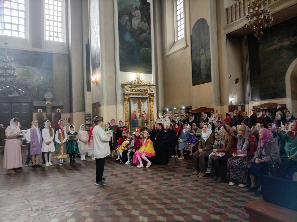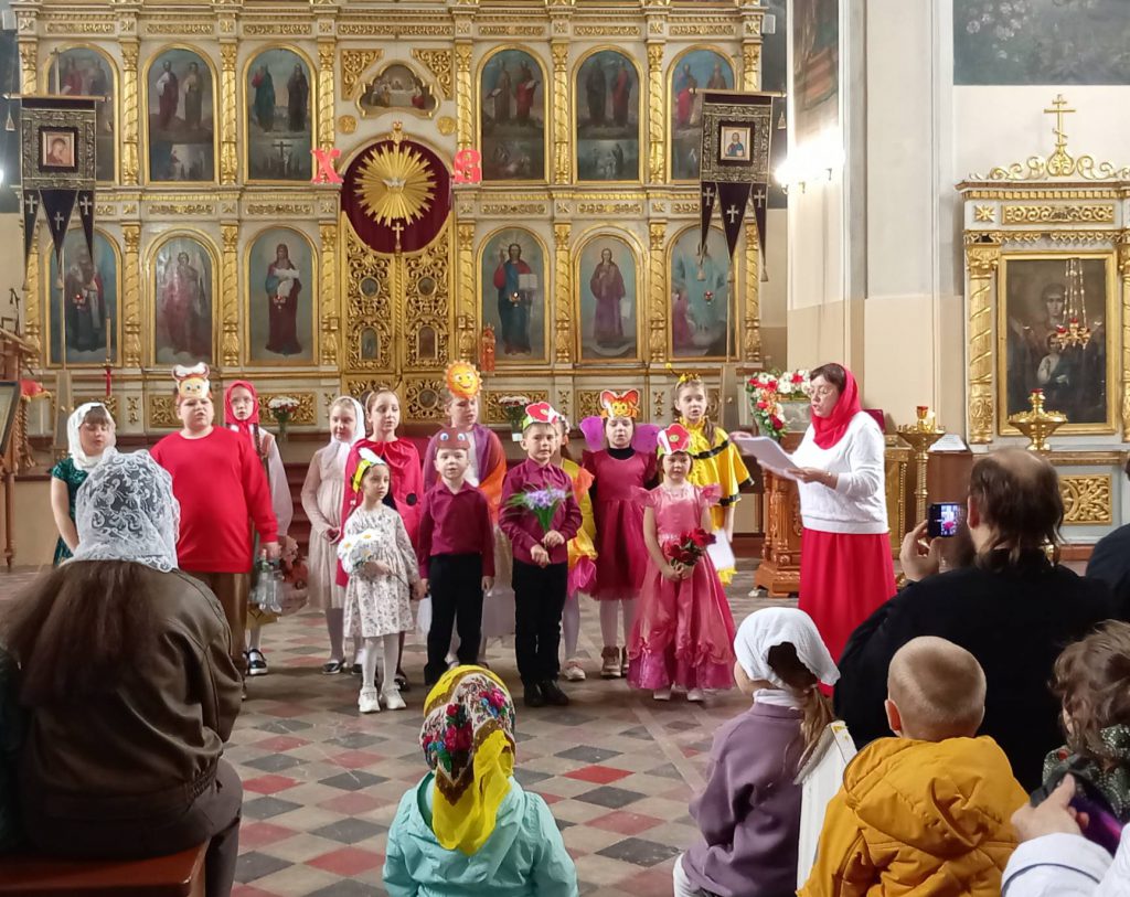 В завершение Светлой седмицы, отмечаемой как продолжение праздника Пасхи, в Неделю Фомину, выпавшую на этот раз на 19 апреля, в Свято-Воскресенском соборе состоялся утренник, подготовленный педагогами и воспитанниками Свято-Сергиевской воскресной школы для прихожан.