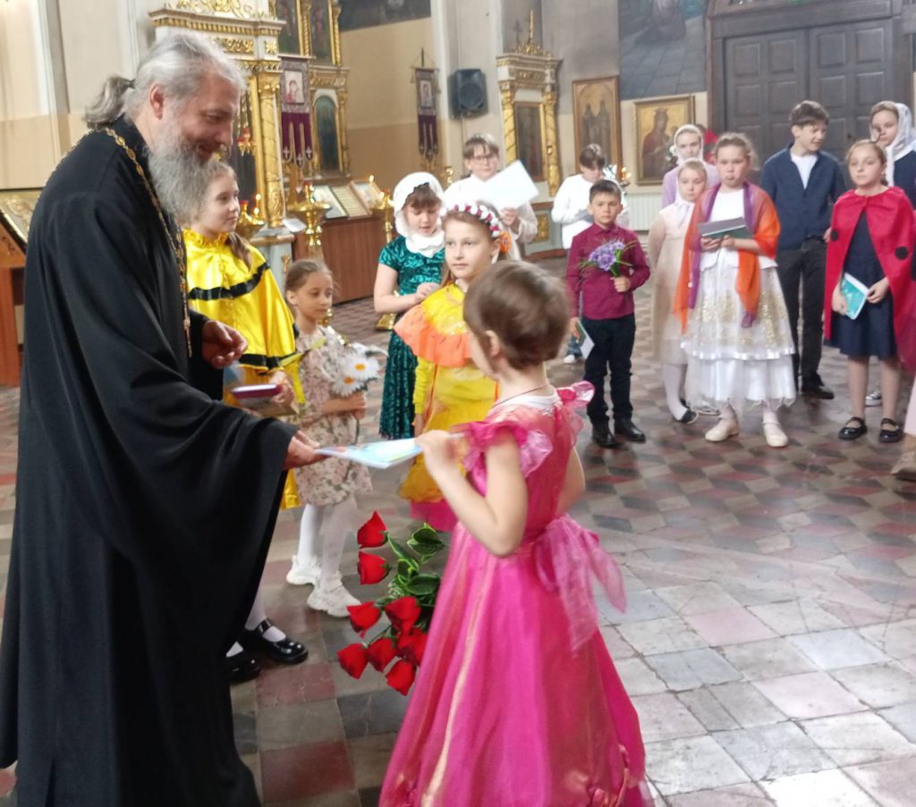 После представления настоятель собора благочинный Николаевского округа протоиерей Владимир Растопшин сердечно поблагодарил мальчишек и девчонок за искренность и чистоту восприятия исполненных ими стихотворных и прозаических произведений, а педагогов – за их усердные труды по воспитанию детей.