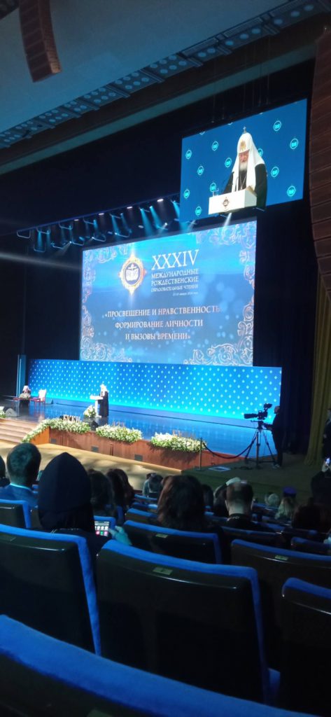 На пленарном заседании Чтений, состоявшемся 27 января в Государственном Кремлевском дворце, Святейший Патриарх Кирилл вновь подчеркнул, что «Церковь разделяет особую ответственность за судьбу нашего народа», отстаивая не только государственный суверенитет России, без которого не может быть самостоятельного развития Отечества, но и духовный суверенитет страны».