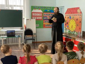 В детском саду №6 клирик собора диакон Сергий Тихонов и преподаватель Свято-Сергиевской воскресной школы Елена Юрьевна Овчинникова всегда желанные гости.