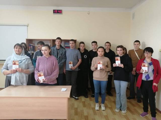 Встреча библиотекаря храма Валентины Викторовны Гришиной со студентами Перелюбского аграрного техникума, состоявшаяся 5 ноября, была посвящена государственному и церковному праздникам, отмечаемым 4 ноября, – Дню народного единства и празднованию памяти Казанской иконе Божией Матери.