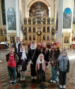 Помощник благочинного по религиозному образованию и катехизации Ирина Владимировна Кузнецова рассказала детям о храмосоздателях, строивших на века, и тех, кто в самые тяжёлые для Церкви времена, в эпоху богоборчества, сумел сохранить сам собор и его святыни.