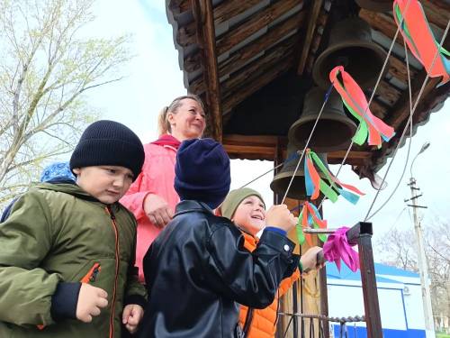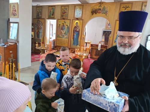 Мальчишки и девчонки со свойственной их возрасту непосредственностью выражали восхищение красотой икон и увиденного через Царские врата алтаря, задавали вопросы и делились подробностями своих семейных традиций празднования Пасхи.