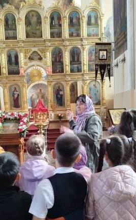 Наталья Владимировна предложила ученикам 3 «В» и классному руководителю Татьяне Витальевне Тихоновой встретиться в соборе и пригласила посетить его на Светлой седмице, когда верующие продолжают празднование Воскресения Христова.